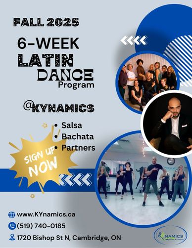 A program to get your feet, hips and body doing and learning Salsa, Bachata and merengue moves. No partner required.